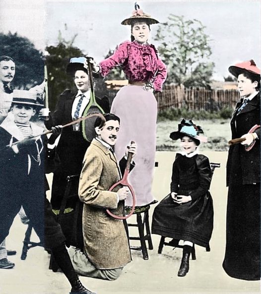 foto: proust, „luftgitarre“ spielend, auf dem pariser tennisboulevard bineau, 1892