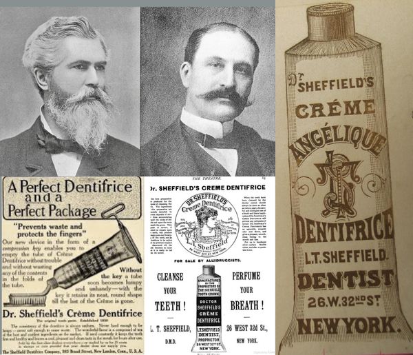 die zahncreme als auch ihre praktische verpackung haben wir den beiden herren auf dem bild zu verdanken, dem dentisten dr. washington sheffield und seinem sohn dr. lucius sheffield aus connecticut.
