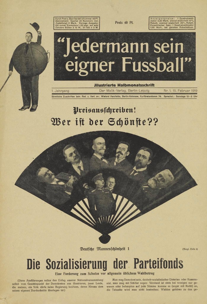 am 15. februar 1919 erschien die erste ausgabe der (dada)zeitschrift „jedermann sein eigner fussball“ von wieland herzfelde und seinem bruder helmut (john heartfield). es war auch die letzte. sie wurde wegen dieses gedichts von walter mehring verboten: