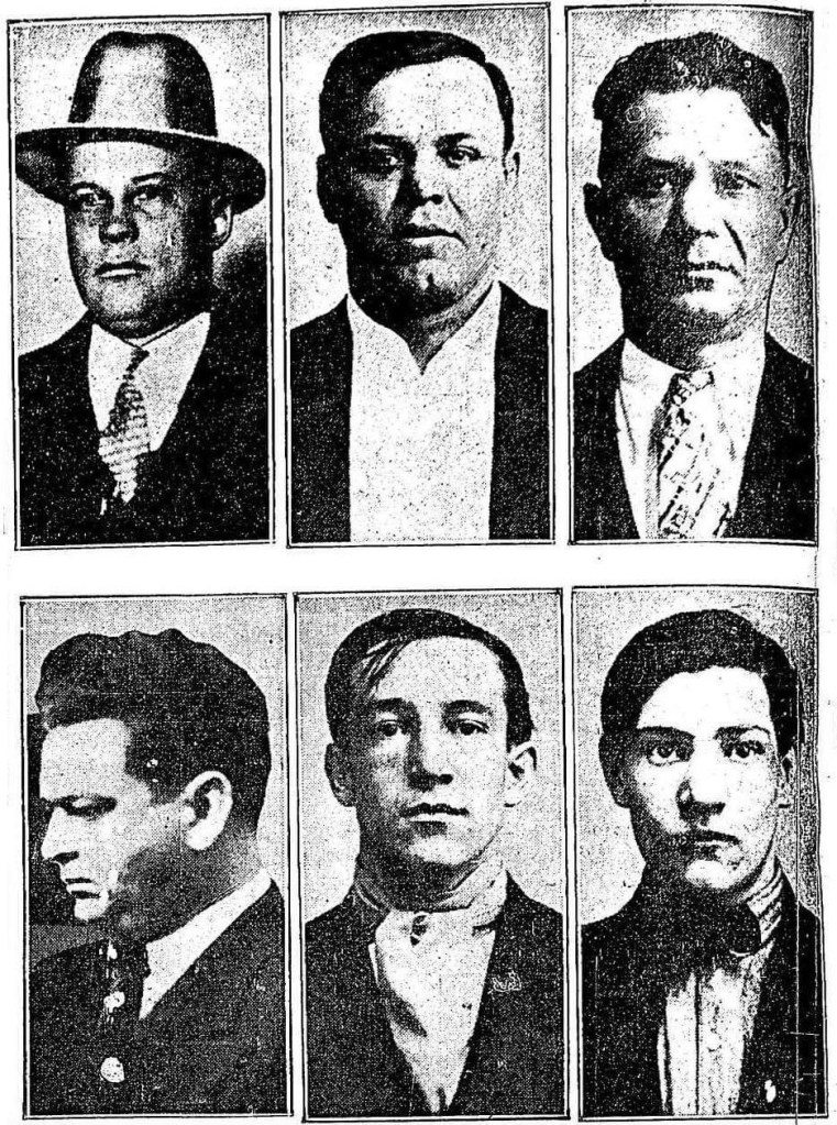 der einzige überlebende und augenzeuge heißt „highball“ und ist ein deutscher schäferhund. die sieben opfer (einer fehlt auf dem foto) gehörten zum umfeld der chicagoer „north side gang“ um den iren george „bugs“ moran. die gang operierte während der prohibition, war teil der „cosa nostra“ und der „kosher nostra“ und die größte konkurrenz der „chicago outfits“, der truppe al capones.
