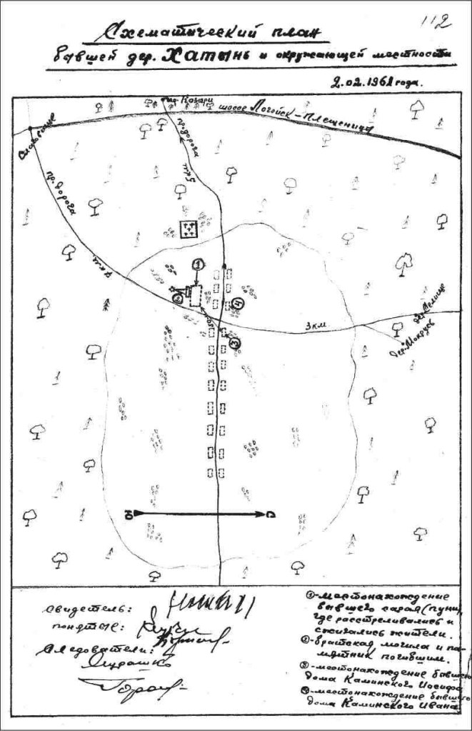 #xатынь. am 22. märz 1943 überfallen mitglieder des schutzmannschafts-bataillons 118 und des ss-sonderbataillons dirlewanger in einer vergeltungsaktion gegen vermeintliche partisanen das dorf chatyn bei minsk. sie machen die 26 häuser dem erdboden gleich, treiben die, die sie nicht vorher erschossen oder erschlagen haben, in eine scheune und zünden sie an: 149 menschen, davon 76 kinder, sterben einen qualvollen tod.