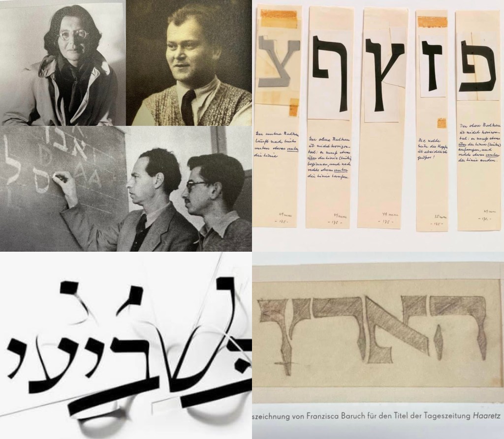 • franziska baruch (1901–1989) schuf holzschnitte, aquarelle, druckschriften für den schocken-verlag, zwei der ersten modernen hebräischen schrifttypen, die „stam“ und die „schocken“, gebäudeinschriften u.a. für erich mendelsohn, nach der emigration nach palästina aber auch den bekannten titel der tageszeitung „haaretz“, das wappen jerusalems und den einband der (alten) israelischen reisepässe…