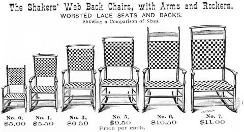 der urtyp des schaukelstuhls geht auf die protestantischen shaker in den usa und das frühe 19. jh. zurück. die shaker-möbel entsprachen der asketischen lebensweise ihrer hersteller: hoch funktional bei verzicht auf schmuck und schnörkel, robust und aus heimischen hölzern wie kiefer, nußbaum oder kirsche gebaut. besonders ihre schaukelstühle – „salem rocker“ genannt – verbreiteten sich rasch, auch nach europa. auf der weltausstellung in philadelphia 1876 lernten sie dann noch das von michael thonet entwickelte bugholz-verfahren kennen und begannen ebenfalls bugholzmöbel herzustellen. thonets berühmter „sessel nr. 1“ von 1849 bestand ja aus über heißem wasserdampf gebogenen rundstäben aus buche, die durch kunstvoll verschnörkelte verbindungsstäbe stabilität erhielten und durch ein rohrgeflecht für die sitzfläche und die rückenlehne. da die einzelnen teile fertigteile waren, die nach dem baukastenprinzip auch mit teilen anderer möbel kombiniert werden konnten, hatte thonet die grundlage für typenmöbel und für die spätere preiswerte serienproduktion geschaffen, auch der schaukelkstühle, die sich nun häufig auch auf gemälden und fotos wiederfinden.