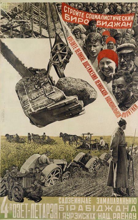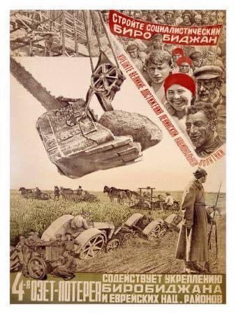 am 7. mai 1934 ließ stalin am tuches haolam das „autonome jüdische gebiet“ offiziell ausrufen (jüdisches ansiedlungsgebiet vor allem für deportierte ukrainische juden war es schon seit 1928). ein 36000 quadratkilometer großes unwirtliches sumpftaigagebiet (michail kalinin: „eine perle in der taiga“) unweit der chinesischen grenze mit einer bevölkerungsdichte von unter 5 einwohner/km. trotz großer ziele (150.000 juden sollten in einer alternative zum palästina-zion angesiedelt und zu bauern gemacht werden) und jiddischer zeitungen, theater, radiosendungen usw. lebten aber nie mehr als 18000 juden dort. ein teil (wie die komplette erste stadtführung) fiel stalins säuberungsaktionen zum opfer, die meisten anderen wanderten nach israel aus. heute sind es ca. noch 1600 und ein chabad-rabbiner, dafür immer mehr chinesen, hauptsächlich aber mücken. wen das thema interessiert: 2004 ist ein buch von robert weinberg („birobidschan. stalins vergessenes zion“) auch auf deutsch erschienen.