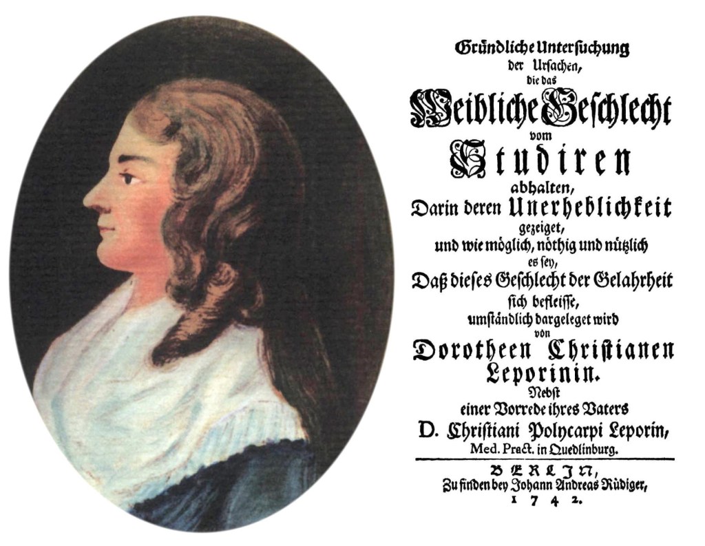 doch aus dem studium wird vorerst nichts. ihre stiefmutter stirbt, sie ist nun zuständig für fünf kleine halbwaisen, heiratet den diakon christian erxleben und bekommt noch vier eigene kinder. doch 1742 veröffentlicht sie ein buch mit dem schönen titel „gründliche untersuchung der ursachen, die das weibliche geschlecht vom studiren abhalten. darin deren unerheblichkeit gezeiget, und wie möglich, nöthig und nützlich es sey, daß dieses geschlecht der gelahrheit sich befleisse“ – eine art frühfeministisches plädoyer, das auf 240 seiten die vorurteile ihrer zeitgenossen gegenüber dem frauenstudium diskutiert und natürlich auch die frage bejaht, ob frauen ärztinnen sein können.