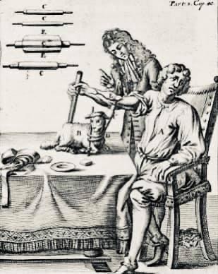 erst 17 jahre zuvor hatte der engländer william harvey den blutkreislauf entdeckt und nachdem 1656 die intravenöse injektion erfunden worden war, begonnen, erste experimente mit bluttransfusionen zwischen tieren anzustellen. auch der italiener francesco folli und der engländer richard lower hatten in dieser zeit schon erfolgreich blut von hund zu hund übertragen. aber denis, er war arzt am hof ludwig des XIV., wagte als erster, nun also blut auf menschen zu übertragen. da es bei seinen späteren patienten zu zwei todesfällen kam, wurde sein verfahren aber vorerst wieder eingestellt. doch schon wenige jahre später, 1718, finden wir ein kapitel „chirurgia transfusoria“ im lehrbuch des chirurgen lorenz heister und weitere hundert jahre weiter gelang es dem englischen geburtshelfer james blundell endlich auch blut von mensch zu mensch zu übertragen. ein segen für die menschheit – vor allem, nachdem der wiener arzt karl landsteiner 1901 auch noch die blutgruppen entdeckt hatte, man bald danach ein verfahren zur konservierung von blut entwickelte und 1921 schließlich auf die idee kam, einen bluttransfusionsdienst einzurichten, mit freiwilligen, unbezahlten spendern.