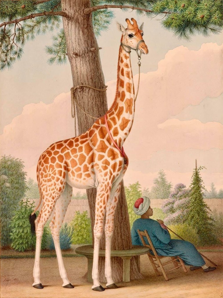 zarafa („die liebliche“) war nach der berühmten medici-giraffe die zweite lebende giraffe in europa seit der antike. am 30. juni 1827 kam sie als diplomatisches geschenk des vizekönigs von ägypten an karl X. in paris an.