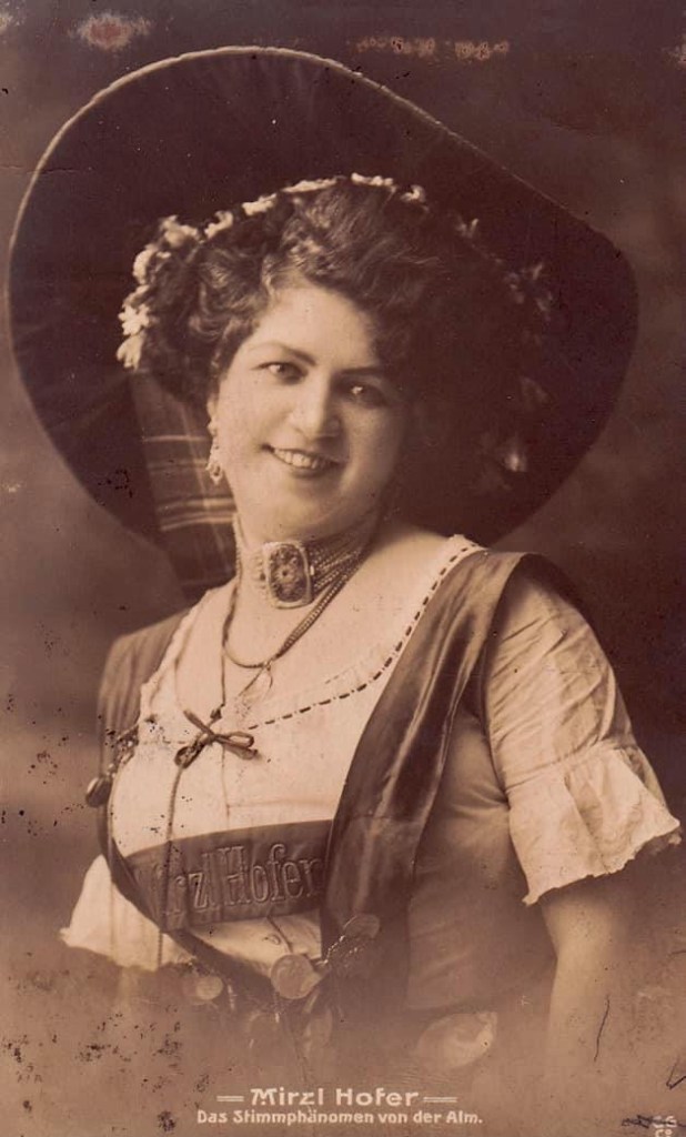 mirzl hofer *26. mai 1877 als maria vidowitsch gilt als als einer der ersten weiblichen popstars österreichs. sie wurde im in- und ausland als „preisgekrönte jodlerin aus graz“, „erste solistin der steiermark“, „beste natur-jodlerin der gegenwart“ und „stimmphänomen von der alm“ bejubelt und hat unmengen platten verkauft.