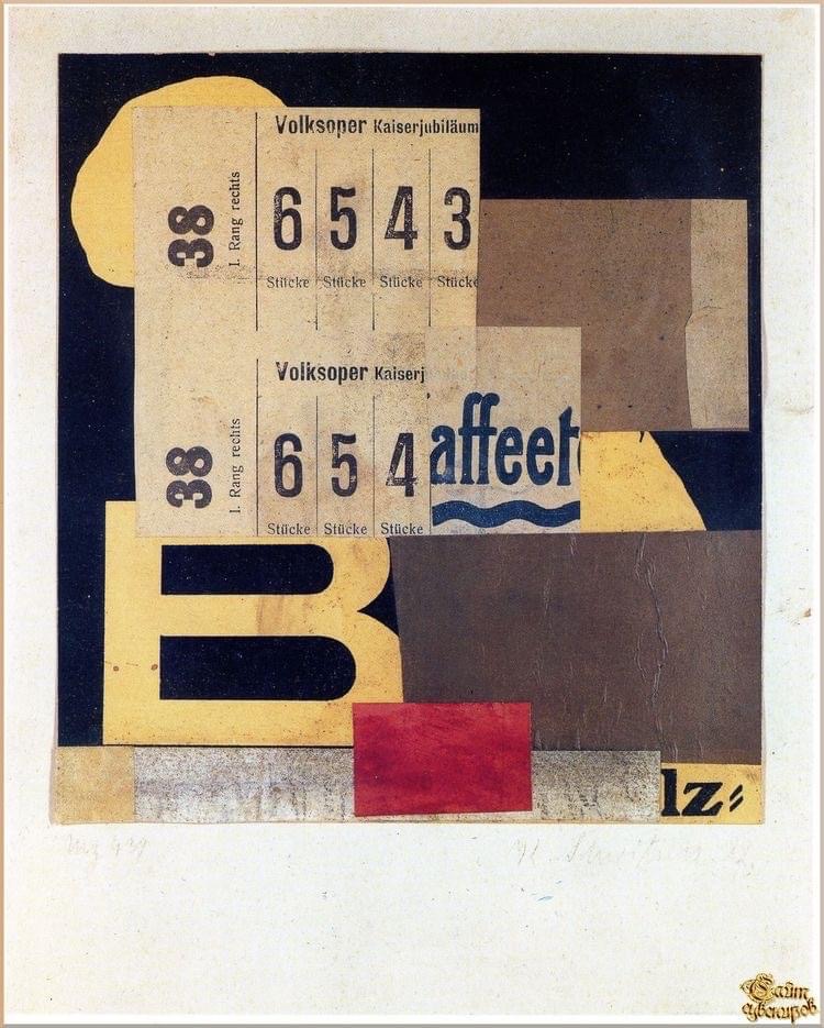 erste öffentliche ausstellung der merzbilder in herwarth waldens berliner galerie „der sturm“. – kurt schwitters: „Ich verließ meine arbeitsstelle ohne jede kündigung und nun gings los. jetzt begann das gären erst richtig. ich fühlte mich frei und mußte meinen jubel hinausschreien in die welt. aus sparsamkeit nahm ich dazu, was ich fand, denn wir waren ein verarmtes land. man kann auch mit müllabfällen schreien, und das tat ich, indem ich sie zusammen leimte und nagelte. ich nannte es merz…“