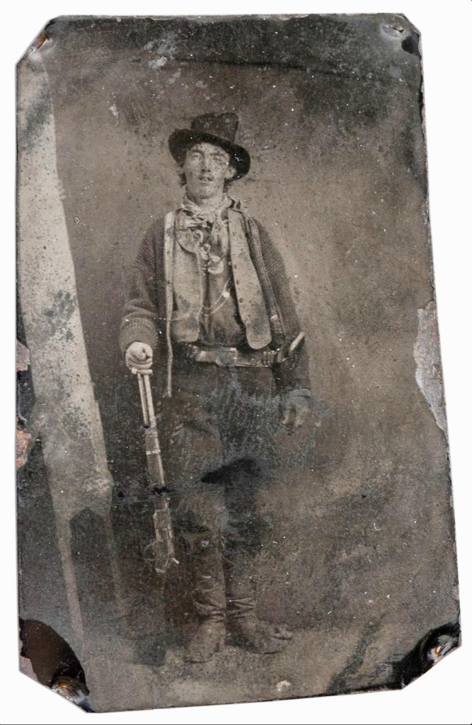 henry mccarty, besser bekannt als „billy the kid“, wird am 14. juli 1881 von seinem ex-kumpel pat garrett aus dem hinterhalt erschossen. es gibt nur zwei oder drei bilder des revolverhelden und mehrfachen mörders. welche faszination er auf seine fans immer noch ausübt (bzw. wie irre der kunstmarkt ist), kann man sich am verkaufspreis dieser fotos ausmalen. nr. 1 zeigt den 20jährigen 1879 mit winchester und colt, ist grade mal 5×8 cm groß und 2011 für 2,3 millionen dollar über den auktionstisch gegangen. bild nr. 2, billy (3.v.l.) beim krocketspiel, wurde 2015 für fünf millionen dollar an einen sammler in kalifornien verkauft und ist damit das teuerste foto der welt. auf bild nr. 3, eine ferrotypie von 1880, die jahrelang unerkannt in einer airbnb-wohnung hing und erst 2017 billy the kid zugeordnet wurde, soll neben ihm (2.v.l.) auch sein mörder pat garrett (1.v.r.) zu sehen sein; wie bei bild 2 sind sich die experten über die authentizität aber nicht einig.