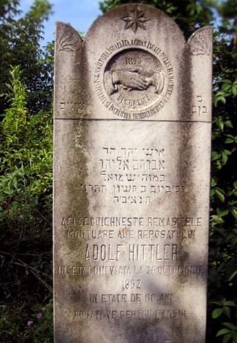im zweiten weltkrieg hat dann ein angestellter des friedhofs zufällig die inschrift des grabsteins bemerkt. aus angst, die deutschen könnten die namensähnlichkeit ihres „führers“ mit einem jüdischen hutmacher als provokation ansehen, ließ die jüdische gemeinde den rumänischen text mit dem namen umgehend entfernen.