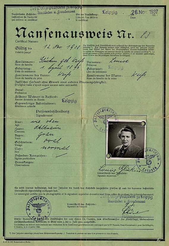 der erste besitzer eines nansen-passes, wie der ausweis bald auch offiziell nur noch hieß, war der aus pommern stammende jüdische nietzsche-forscher oscar levy, der als „former alien enemy“ aus grossbritannien wieder ausgewiesen worden war. die meisten pässe aber wurden für staatenlose russen ausgestellt, bis die berechtigung mit jeder krise auf neue flüchtlingsgruppen ausgeweitet wurde, auf armenier, auf christliche minderheiten aus dem früheren osmanischen reich, auf saarland-flüchtlinge, auf menschen aus der zerbrochenen k&k-monarchie.
