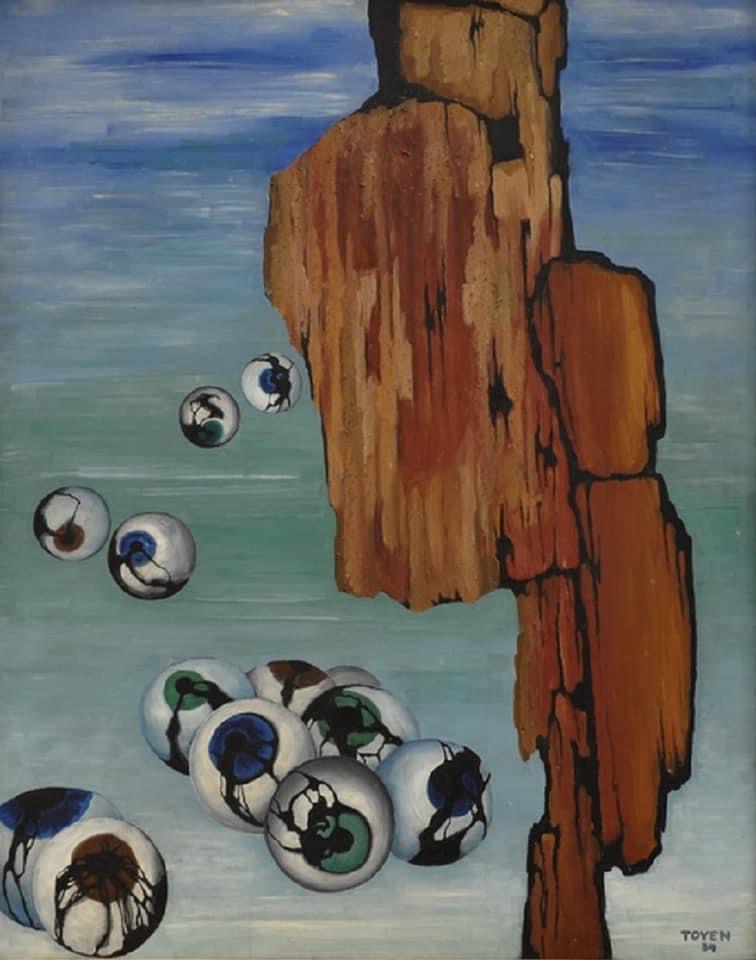 toyen sagte sich mit 16 von seiner familie los und zog 1925 mit seinem damaligen partner jindrich štyrský nach paris. die beiden gründeten eine künstlerische alternative zu abstraktion und surrealismus und nannten das „artificialism“, „ein abstraktes bewusstsein der realität … definiert durch poetische wahrnehmungen von erinnerungen“.