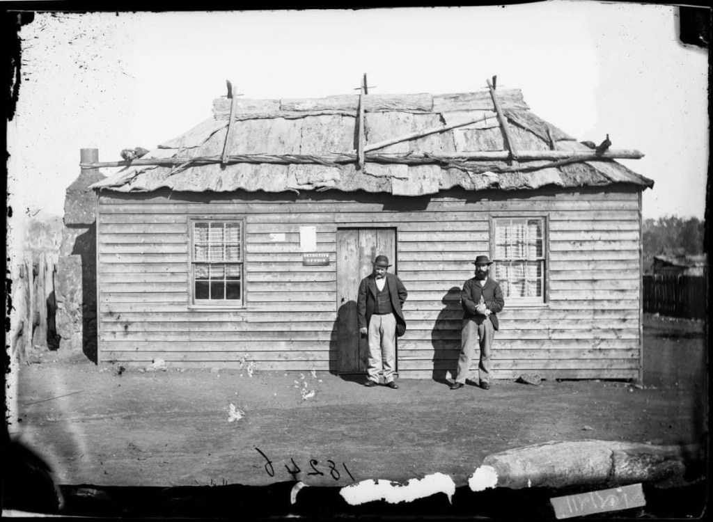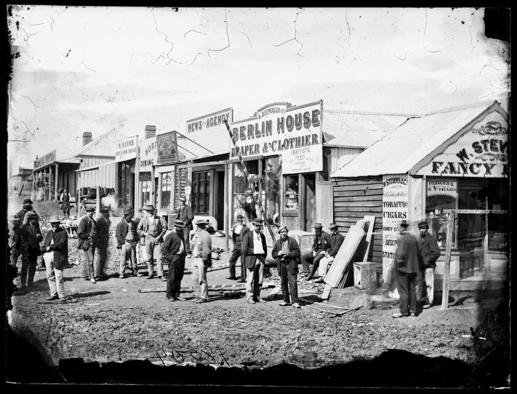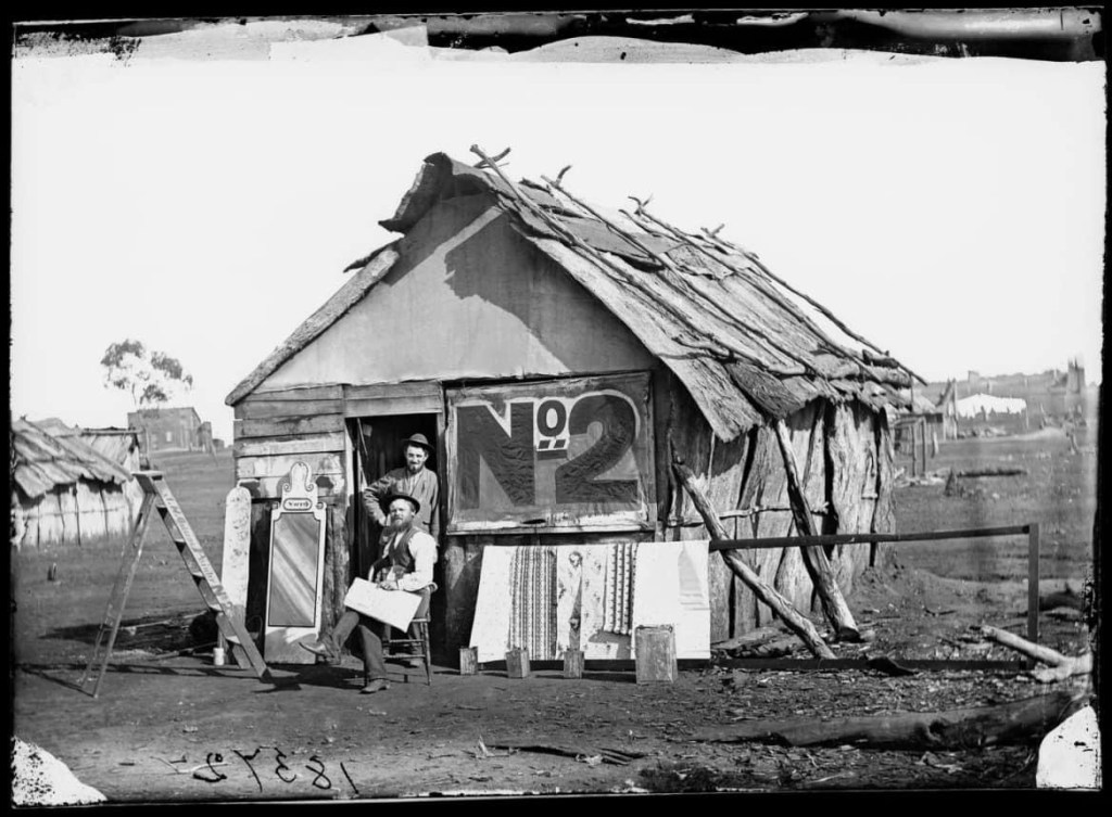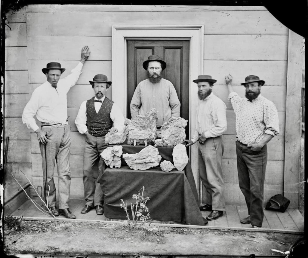 der glückspilz auf den ersten beiden bildern hat am 19. oktober 1872 in australien den (bisher) größten goldklumpen aller zeiten gefunden. genau genommen war es kein nugget, sondern ein goldquarzbrocken mit sehr hohem goldgehalt – anderthalb meter hoch, 60 cm breit, 285 kilo schwer, feingoldgehalt etwa 57 kilogramm (nach heutigem stand etwa 4 mio euro wert). und genaugenommen war der entdecker auch nicht der entdecker, sondern der (mit)besitzer der mine. aber er ließ sich als erster mit ihm fotografieren, der brocken machte ihn reich, und so heißt er bis heute nach ihm „holtermann nugget“. bernhardt otto holtermann (1838–1885) stammte aus hamburg, war der sohn eines wildhändlers, hatte keinen bock auf das preußische militär und wanderte mit 20 nach australien aus. holtermann jobte als stallknecht und kellner in sydney und ließ sich bald vom goldrausch anstecken. er lernte einen deutschpolen kennen, hugo ludwig luis beyers, der bereits erfahrungen als goldgräber hatte. die beiden kauften 1861 eine parzelle beim goldgräberort hill end in der nähe der stadt tambaroora, nannten sie „star of hope mine“ und gruben hier, immer wenn sie genug geld mit anderen aushilfsjobs verdienten hatten, und zwar zehn jahre lang ziemlich erfolglos. die männer hausten in notdürftig zusammengezimmerten holzhütten in erbärmlichen verhältnissen. bis eben zu diesem 19. oktober 1872…