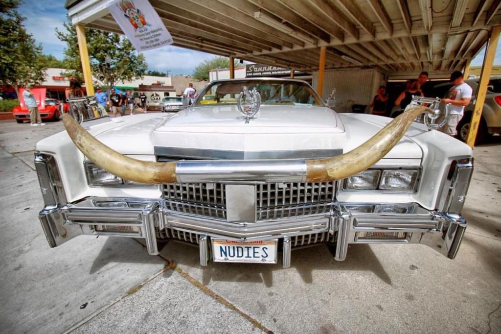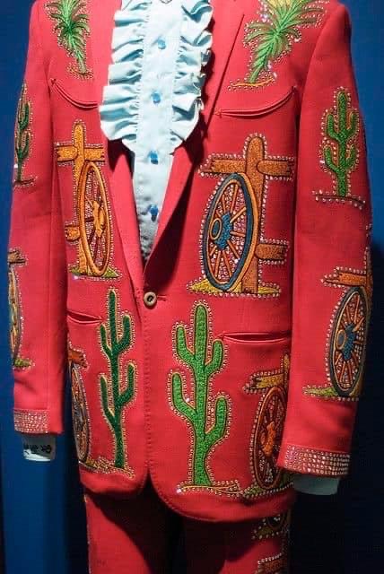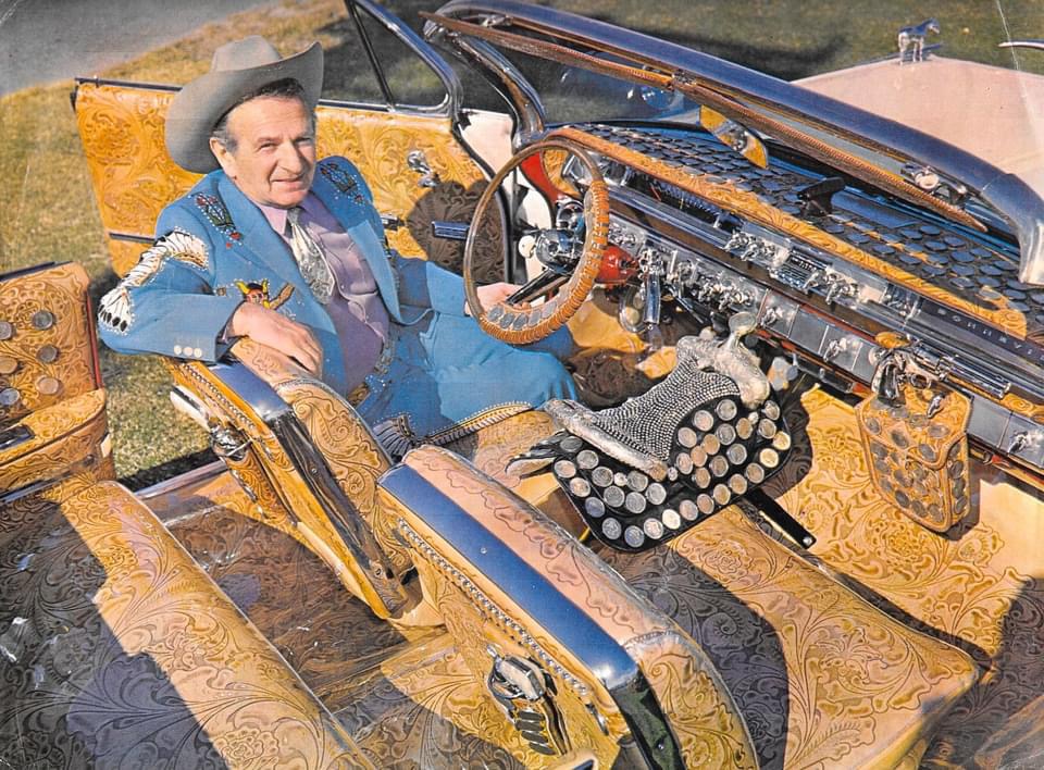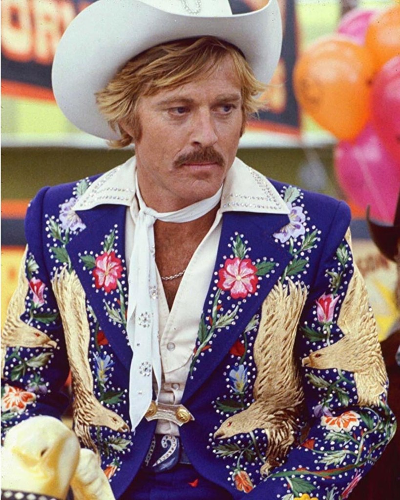 zu cohns berühmtesten kreationen zählt elvis presleys 10.000-dollar-gold-lamé-anzug, der weiße mit musiknoten besetze cowboy-anzug von jank williams und das ikonische kostüm, das robert redford in „electric horseman“ trug. nudies ausgefallener stil erstreckte sich auf alles und auf sich selbst. er trug schimmernde fransenanzüge, riesige cowboyhüte, übergroße sonnenbrillen und mehrere goldketten und „frisierte“ seine autos, die dann als „nudie mobiles“ genauso begehrt wurden wie seine anzüge und stiefel, denn er verpasse ihnen silberbesetzte armaturenbretter, pistolentürgriffe, riesige kühlerfiguren und hupen, die wie schreiende maultiere klangen.