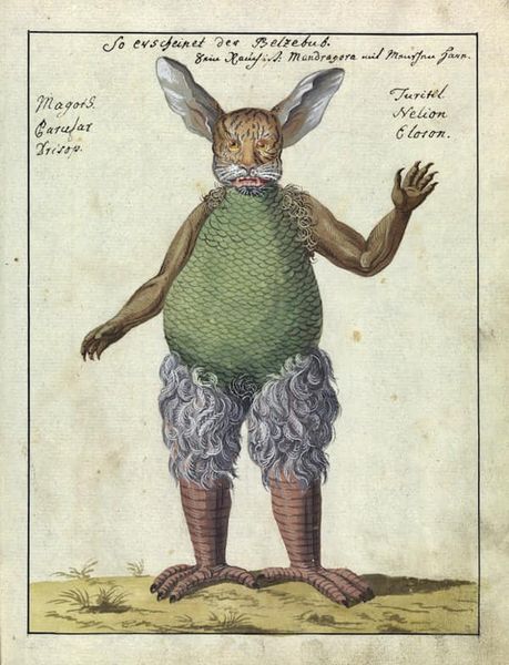 Klassifizierung der Dämonen, Kabbalistische Symbole und magische Künste zum Beschwören böser Geister (hier hauptsächlich zum Zwecke des Schatzgrabens), in: „Compendium rarissimum totius artis magicae sistematisatae per celeberrimos artis hujus magistro“. deutsch/latein, ca. 1775