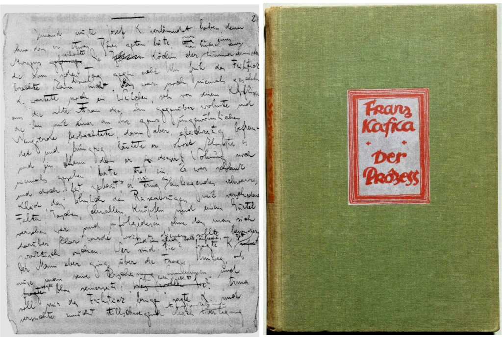 „[…] ‚wie ein hund!‘ sagte er, es war, als sollte die scham ihn überleben.« – 1926 erscheint in dem kleinen berliner verlag „die schmiede“ franz kafkas „der process“, gegen dessen letzten willen bewahrt und herausgegeben (göttin sei dank!) von seinem freund und nachlassverwalter max brod, der auch die (umstrittene) reihenfolge der kapitel festlegt. das manuskript, ein konvolut aus 161 losen blättern wird 1988 für 3,5 mio dm von brods sekretärin bei sotheby‘s versteigert und ist heute im literaturmuseum in marbach zu bewundern. der überwältigte kurt tucholsky schreibt am 9.3.1926 prophetisches in der „weltbühne“: