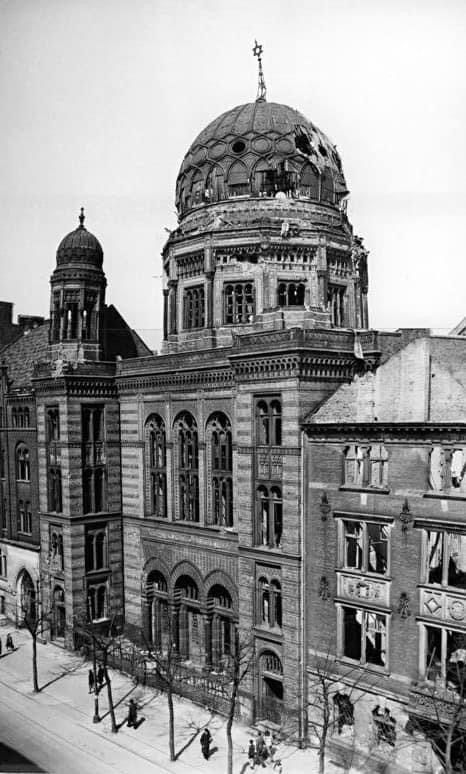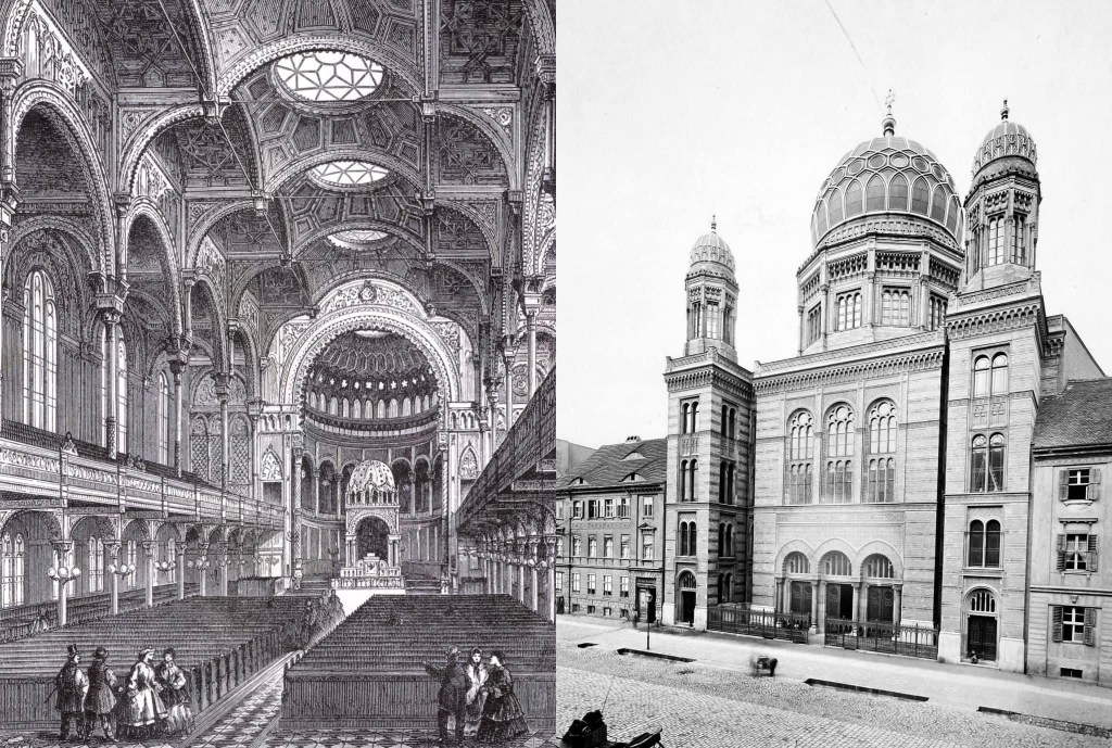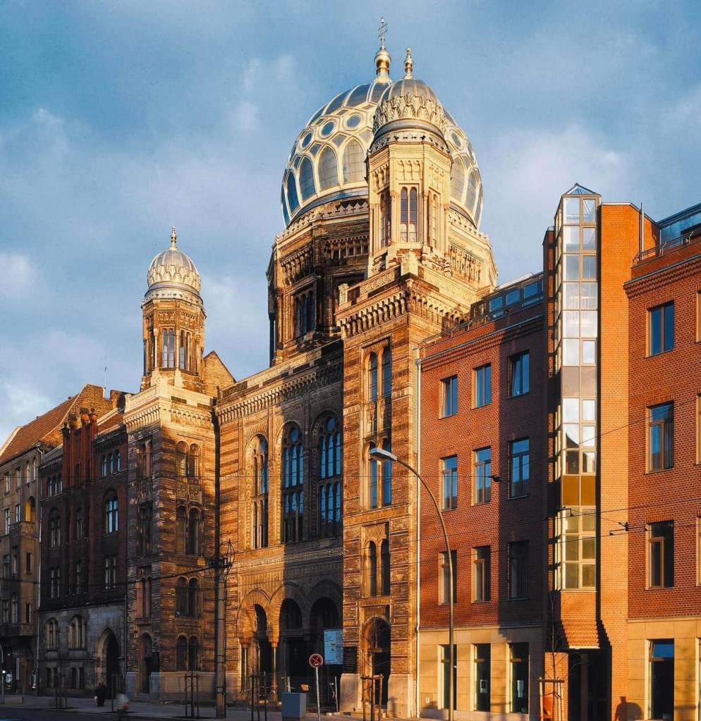 5. september 1866: am jüdischen neujahrstag (25. elul 5626) wird die „neue synagoge“ in der oranienburger straße in berlin eingeweiht. ehrengast ist der preußische ministerpräsident otto von bismarck. mit 3200 plätzen ist das orientalisch gehaltene prunkstück des baumeisters eduard knobloch die größte synagoge deutschlands. in der pogromnacht 1938 läßt der couragierte reviervorsteher vom hackenschen markt, wilhelm krützfeld, ein von der SA gelegtes feuer von seinen polizisten löschen. 1943 wird die synagoge durch britische bomben zerstört. 1958 wird der hauptraum gesprengt. 1988 beginnt der wiederaufbau, 1995 erfolgt die wiedereröffnung (des erhaltenen teils zur straße hin).