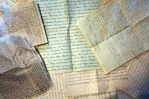 90 Prozent der Papiermassen in Lottes Wohnung sind Briefe. Briefe, Briefe, Briefe. Geschrieben auf durchscheinendem dünnen Schreibmaschinenpapier DIN A 4, einzeilig, alle auf Postkartengröße gefaltet oder auf ebenso dünnen Luftpostkuverts – diese Sorte, wo Brief und Umschlag eins sind und nach dem Schreiben gefaltet und zugeklebt werden. Die Briefe hat sie eng zusammen gequetscht in kleinen Kisten aufbewahrt und wahrscheinlich nie wieder angesehen. Allein den Inhalt von den Umschlägen zu trennen und die Luftpostbriefe aufzufalten, dauert Stunden. Den allergrößten Teil davon hat Lotte selbst (sie bewahrte die Durchschläge ihrer Briefe auf) an ihre Mutter Grete oder diese an sie geschrieben.