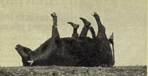 aber es funktionierte, die tiere ließen sich täuschen. allerdings fiel richard einmal in dem falschen ochsen in ohnmacht (zweites bild), und sein bruder brauchte eine stunde, um ihn aus seinem umgekippten versteck wieder herauszubekommen. (das war 1901 dann auch das ende des erfolgreichen kurzen arbeitsleben des ochsen:)