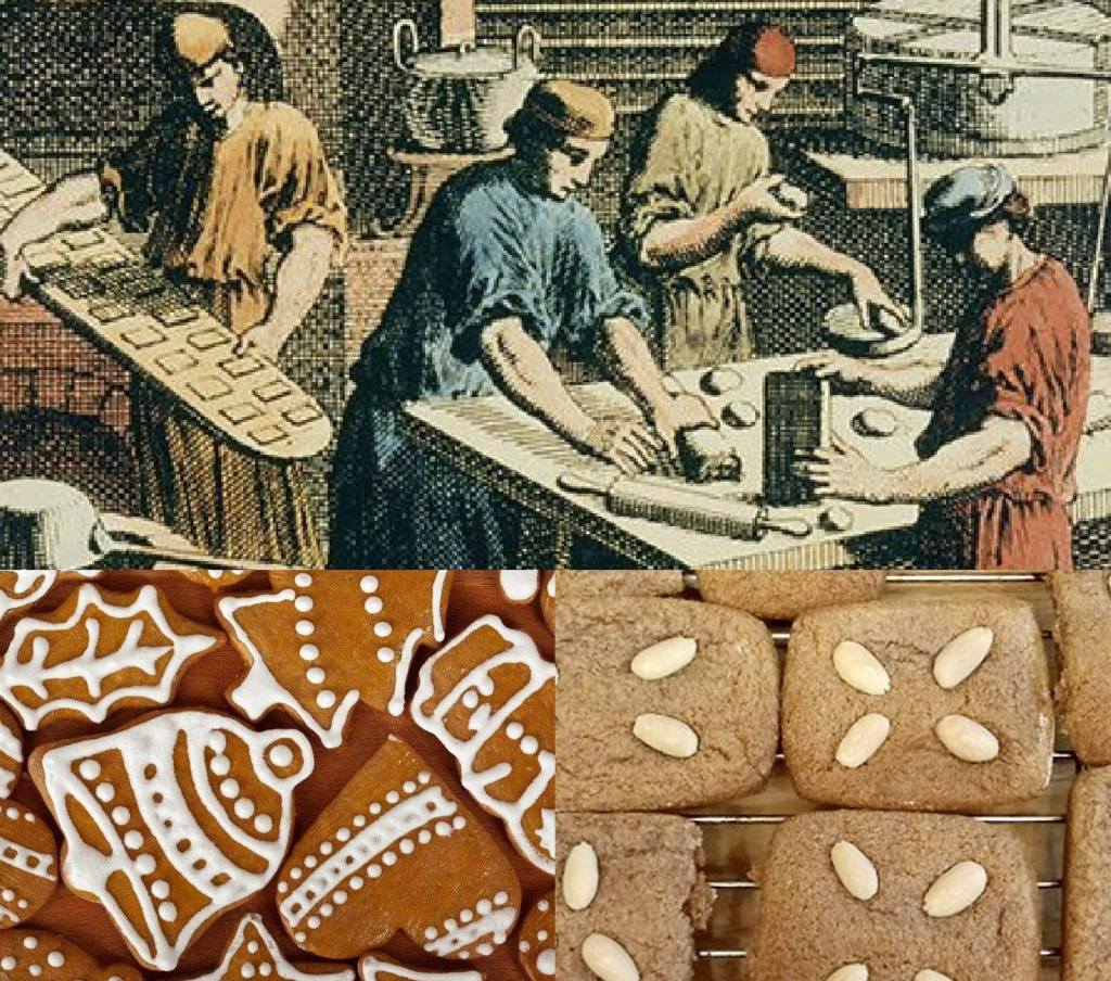 lebkuchen wurden schon sehr früh auch zu neujahr verschenkt (belegbar ab dem 7. jahrhundert), anfangs gegen den willen der kirche, die das als heidnische sitte geißelte. die lebkuchen waren mit den kreuzzügen und den exotischen gewürzen nach europa gelangt. sie waren lange haltbar und nährreich, eigneten sich daher als wegzehrung und handelsware, und da bienen meist in klöstern gezüchtet wurden, honig war sehr teuer, hatten die klöster zunächst auch ein monopol auf die herstellung der süßen gebildbrote und auch der begriff „lebkuchen“, der im deutschen sprachraum zuerst im 13. jahrhundert auftaucht, hat sich wahrscheinlich hier aus dem lateinischen wort „libum“ entwickelt, das im alten rom genau diese honigfladen meinte; andere begriffe wie „panis mellitus“ oder „panis piperatus“ bezogen sich auf opferkuchen oder solche, die zb. mit pfeffer gewürzt waren. wobei pfeffer zunächst ein sammelbegriff für alle gewürze war.