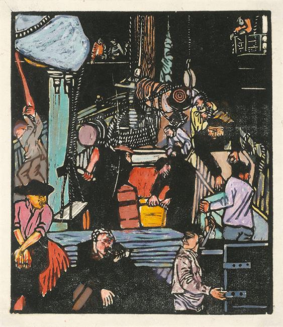 Gleichfalls noch 1908 heiratete Kalvach in Triest seine Freundin Marie Klarer, die wenige Tage später die gemeinsame Tochter Olga gebar. Marie brachte in den nächsten zwölf Jahren weitere fünf Mädchen und einen Jungen zur Welt, der aber schon nach wenigen Monaten verstarb. Und da die Familie weiter in Triest leben blieb, hielt sich auch der Künstler oft dort auf. Kalvach mochte Triest, besonders den Hafen (ich auch) und verewigte ihn in einer Reihe von Holzschnitten, die zu seinen bekannteren Werken zählen.