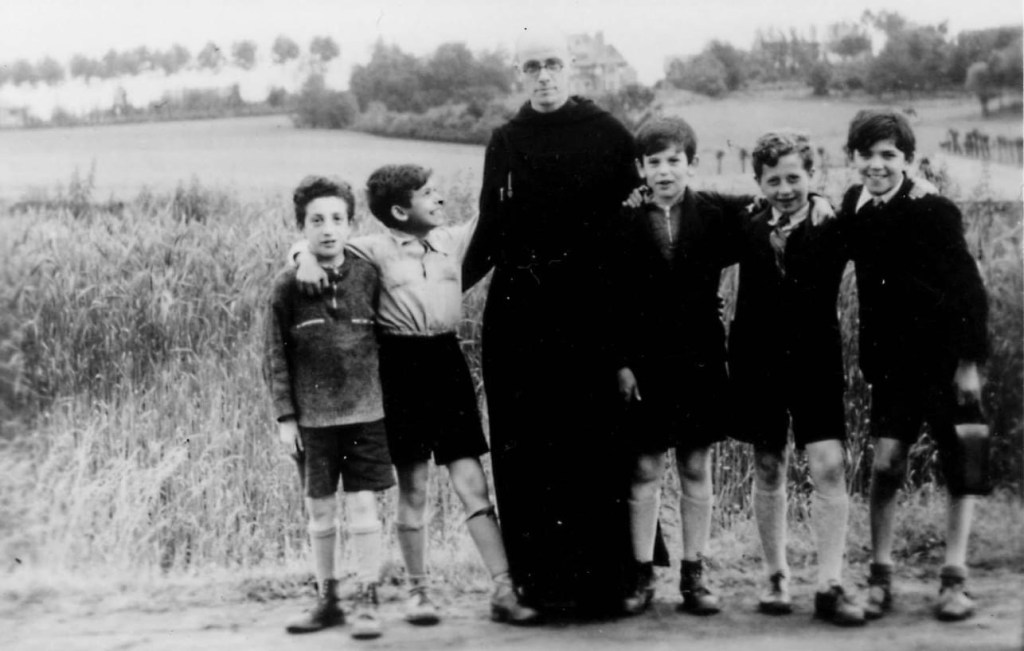 Vater Bruno mit fünf geretteten Kindern (v.ln.r.: Henri Zwierszewski, George Michaelson, Vater Bruno, Willy Michaelson, Henri Fuks, Willy Sandominski). Henri Reynders bzw. Dom Bruno wurde 1942 einem Blindenheim in Hobdomont zugewiesen und bekam schnell mit, dass viele der Mitarbeiter und Bewohner Juden waren, die sich hier versteckten. Mit Hilfe von Albert van den Berg wurden die Kinder schnell in andere Verstecke gebracht. Vater Bruno fuhr auf seinem Fahrrad von Ort zu Ort und kümmerte sich persönlich um alle Details für jede einzelne Flucht und versuchte unermüdlich „Gastgeber“ zu finden. Er brachte einige Kinder auch bei seiner Mutter und seinem Bruder unter und in verschiedenen katholischen Einrichtungen. In seinen Aufzeichnungen, die er nach dem Krieg ergänzte, finden sich 307 „Fälle“, aber man geht davon aus, dass es deutlich mehr waren, denen er geholfen hatte, mit Unterkünften, gefälschten Ausweisen und Taufscheinen, Geld und Lebensmittelkarten.