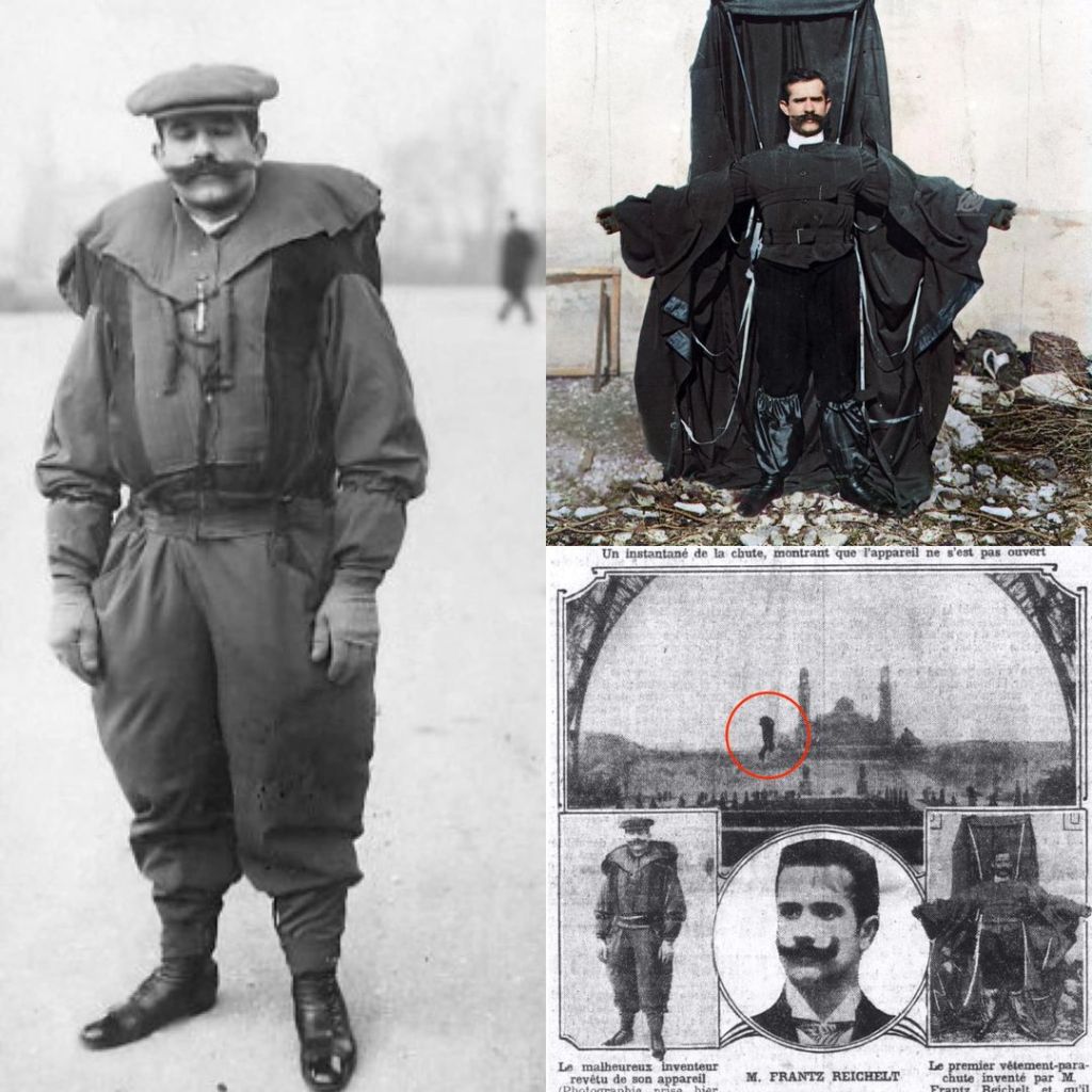 heute vor 112 jahren stürzt der schneider franz reichelt mit seinem selbstgebauten fallschirm vom eiffelturm in den tod