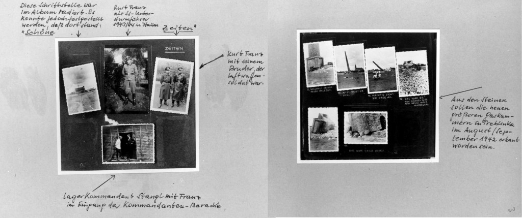 Der Mann mit dem größten Einfallsreichtum beim Einsatz der Musiker und Künstler war, wie gesagt, Kurt Franz – zuvor beim Euthanasie-Projekt T4 und als Wachmann in Buchenwald und Bełżec, nun aufgestiegen zum stellvertretenden Lagerleiter, Besitzer eines privaten Fotoalbums aus Treblinka mit dem Titel „Schöne Zeiten“, 1965 zu lebenslanger Haft verurteilt, seit Ende der 70er-Jahre Freigänger, verstorben 1998.