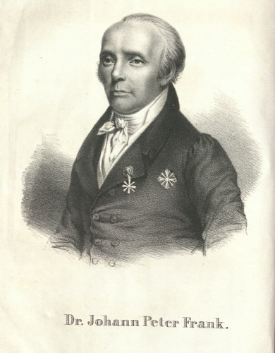 Medizin studiert Frank in Heidelberg und Straßburg, wo er praktische Erfahrungen bei Krankenbesuchen im Militärspital sammelt, nun auch noch zum Doktor der Medizin promoviert, und zum ersten Mal den Gedanken äußert, dass „obrigkeitliche Vorsorge“ imstande sein könnte, Krankheiten zu verhindern und dazu „eine systematisch bearbeitete Wissenschaft“ vonnöten sei.