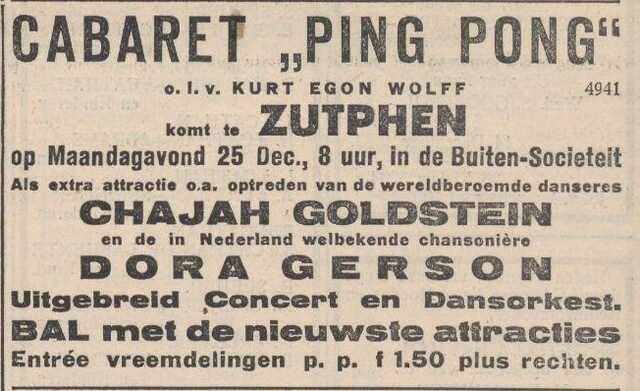 Nachdem Dora Gerson schon im Sommer 1932 von der deutschen Presse als Jüdin angepöbelt worden war, fuhr sie kurz nach der Machtübernahme 1933 nach Holland und schloss sich dem deutschen Emigranten-Kabarett „Ping-Pong“ an, sang zum Geldverdienen aber auch in Kinos in den Filmpausen.
