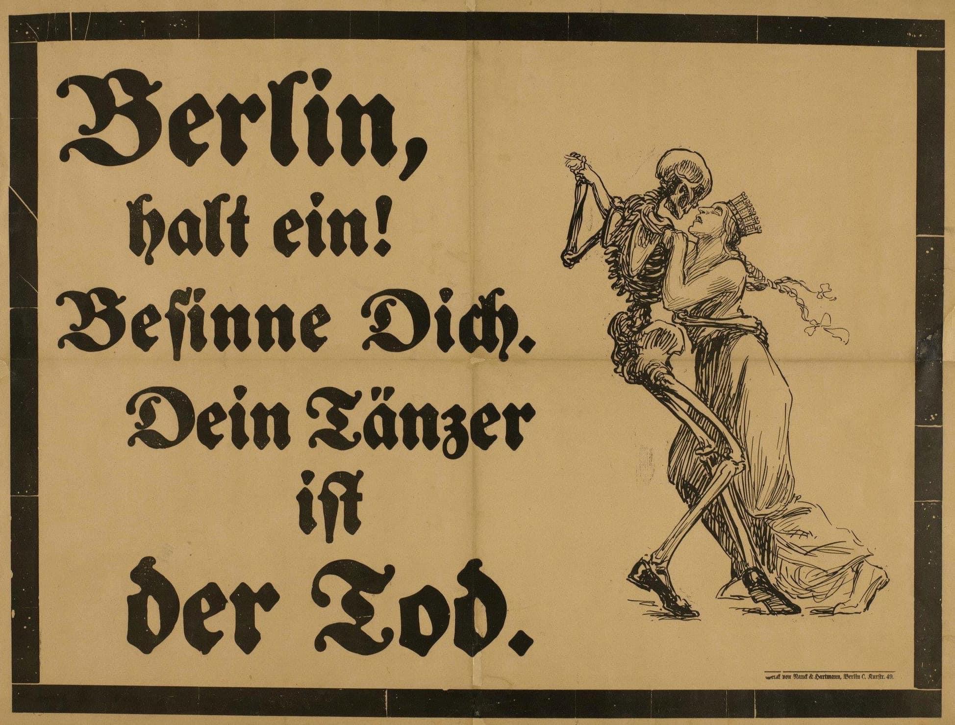 Aber nicht mal das scheint zu stimmen. Im Projekt Gutenberg kann man Paul Zechs 30er-Jahre-Roman „Deutschland, dein Tänzer ist der Tod“ abrufen und der beginnt mit der Anmerkung: „…der Titel ist eine Abwandlung meiner Ende 1918 entstandenen Ballade ‚Berlin, halt ein, besinne dich, dein Tänzer ist der Tod“‚.