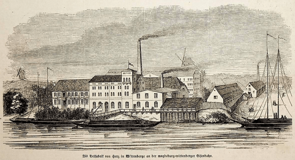 Die Zeit und der Standort waren klug gewählt. 1806 war die Gewerbefreiheit in Preußen eingeführt, 1820 die sog. Mühlengerechtigkeiten aufgehoben und Herz 1823 als preußischer Staatsbürger naturalisiert worden, so dass er nun frei agieren konnte. Wittenberg lag verkehrsgünstig direkt an der schiffbaren Elbe, vor den Toren der Stadt gab es ein großes Anbaugebiet für Lein, Rapst, Rüben und Sonnenblumen, und es standen genügend Arbeitskräfte zur Verfügung…