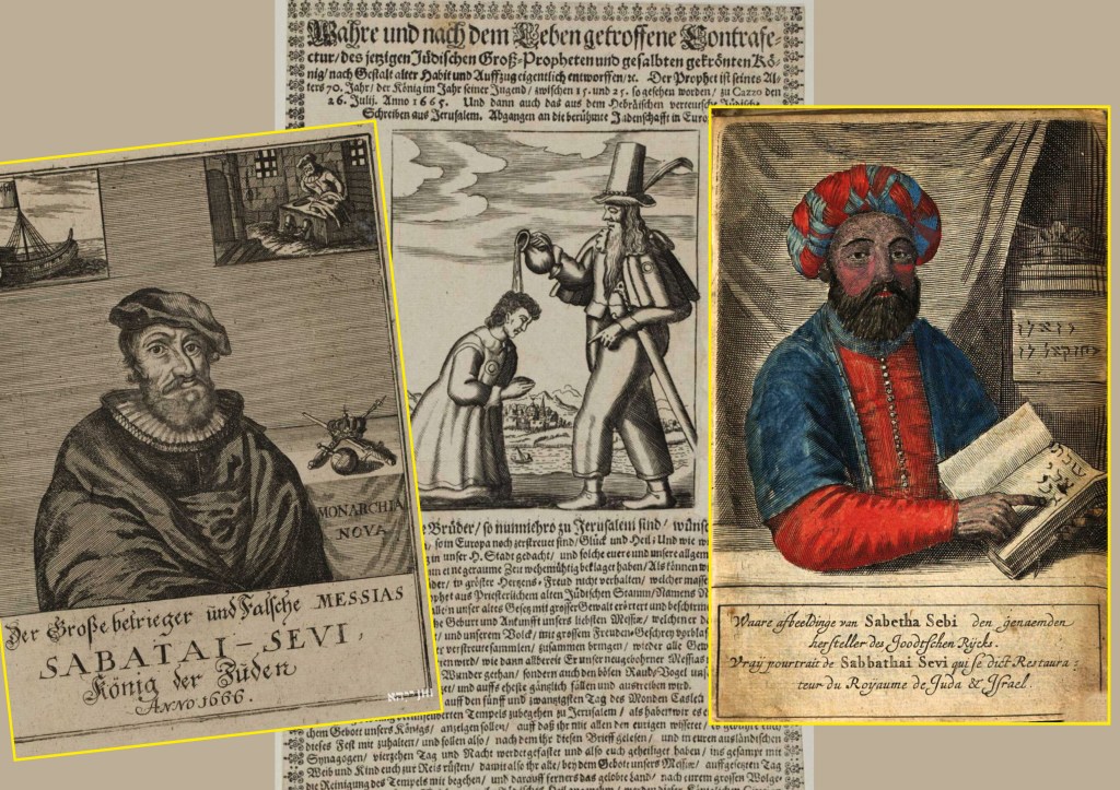 Er stammte aus Smyrna (Izmir), war der Sohn eines Geflügelhändlers und soll während der Chmelnizki-Pogrome 1648, als Juden in Osteuropa zu Hunderttausenden umgebracht wurden, eine Vision gehabt haben – nämlich, dass er der Erlöser sei. Daraufhin schloss ihn die jüdische Gemeinde aus, er ging nach Saloniki, wurde wieder ausgewiesen, dann nach Konstantinopel und weiter über Kairo nach Jerusalem. Als er sich 1665 von dem Kabbalisten Nathan von Gaza eine geistliche Unterweisung geben lassen wollte, soll der ihm gesagt haben, die brauche er nicht, weil er ja der Messias sei. Das ließ Schabbtai sich nicht zweimal sagen: er ernannte zwölf Mitglieder der Gemeinde von Gaza zu Repräsentanten der zwölf Stämme Israels und ließ sich zum Messias ausrufen. Er übernahm die Ideen von Abraham Jachini, eines anderen jüdischen »Spinners«, der die Endzeit nicht mit Fasten und Beten herbeizwingen wollte, sondern mit kultischen Gruppenorgien und dem bewussten Brechen aller Sittengesetze (weil, wenn der Messias gekommen ist, gibt es ja keine Sünde mehr, also auch keine Ge- und Verbote). Schabbtai heiratete also eine aus Polen stammende Sarah, die vermutlich Prostituierte war, verteilte Land, das ihm nicht gehörte, setzte Unter-Könige ein, rief Frauen zum Lesen der Tora auf und strich alle Trauertage. Seine Sabbatianer-Sekte wuchs schnell an, und die frohe Botschaft von der Ankunft des Messias wurde von den Juden in Europa, die unter dem Dreißigjährigen Krieg und den Kosakenaufständen zu leiden hatten, begierig aufgenommen. Z.B. haben viele Hamburger Juden damals ihr Hab und Gut verkauft, weil sie ja demnächst erlöst würden oder Vorräte mit Trockenproviant angelegt, um jederzeit seinem Ruf folgen und nach Jerusalem aufbrechen zu können.