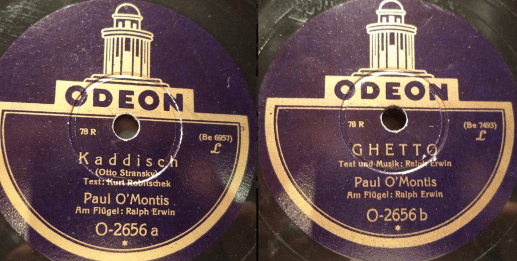 Offenbar ist Paul O’Montis Ansehen so gefestigt, dass es seiner Karriere nicht schadet, in einer Zeit des wachsenden Antisemitismus solche Lieder in sein Programm zu nehmen und auf Platten zu singen, oder er leidet als Außenseiter mit den jüdischen Paria mit. Etwas irritierend wirkt die Mischung, auf der Rückseite einer der „Ghetto“-Aufnahmen hören wir „Ich bin verrückt nach Hilde, die küsst ja wie ’ne Wilde“ (1929), ein weiterer seiner Songs, in denen ein Spiel mit den Geschlechtern und hier ein Transvestit oder eine Transsexuelle vorkommt: