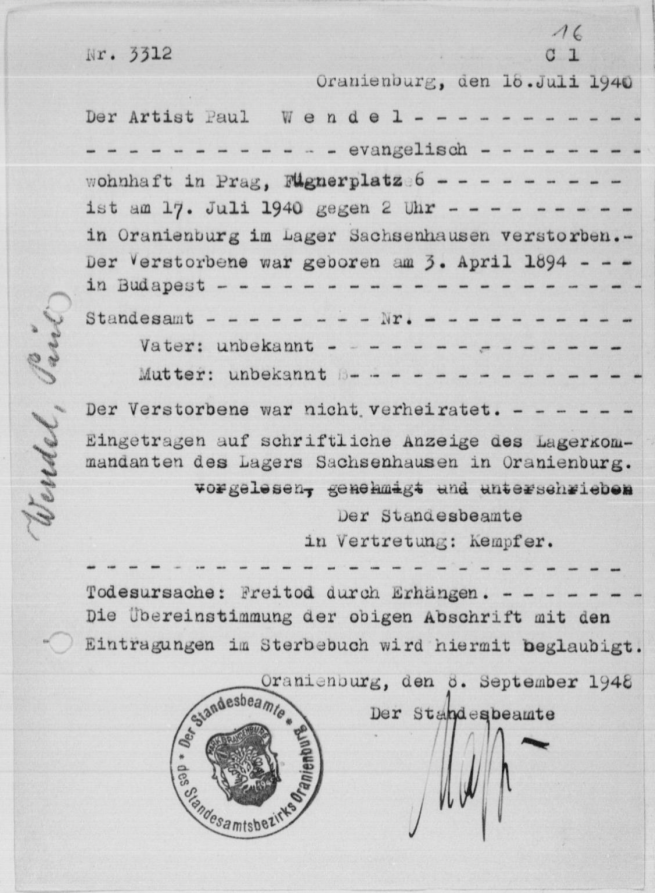1938 flieht er nach Prag weiter. Im September wird er erneut wegen „Unzucht gegen die Natur“ verhaftet, und zu drei Monaten verurteilt, profitiert aber von einer Amnestie und kann sich im März 1939 offiziell als Untermieter am Fügnerplatz 6 anmelden, seine letzte amtliche Adresse. Denn er wird bereits im Juni, inzwischen ist auch die Tschechoslowakei besetzt, erneut verhaftet. Vermutlich sitzt er die Monate in einem Prager Gefängnis, bis man ihn Ende Mai 1940 unter der Nummer 25131 als „Schutzhäftling § 175“ in das KZ Sachsenhausen überstellt und in den (Isolier-)Block 35 einweist.