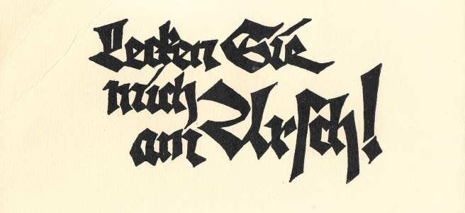 die antwortkarte, die der offenbacher schriftgestalter und kunstprofessor rudolf koch (1876-1934) zu verschicken pflegte, wenn er um ein kostenloses exemplar einer seiner arbeiten angefragt wurde:)