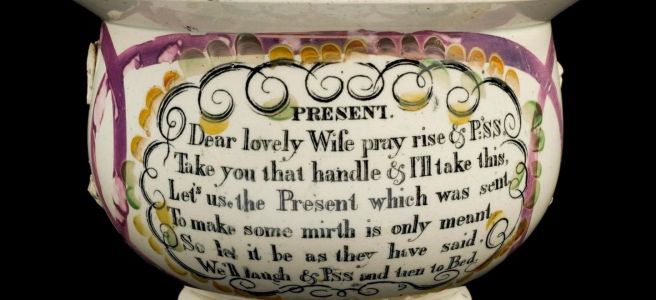Zufallsfund auf der Suche nach der Geschichte des Wasserklos (Keramik, England um 1800):Present.Dear lovely Wife pray rise & Piss, Take you that handle & I'll take this.Let’s use the Present which was sent,To make some mirth is only meant.So let it be as they have said.We'll laugh & Piss & then to Bed. Marriage. This pot it … „Lyrischer“ Nachttopf weiterlesen