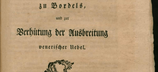 „verordnung wider die verführung junger mädgen zu bordels, und zur verhütung der ausbreitung venerischer uebel“, erlassen in berlin vor 241 jahren. auszüge:es ist in erfahrung gebracht, daß junge einfältige mädgen, besonders aus kleinen städten, unter arglistigen vorspiegelungen, sie in vorteilhafte dienste unterzubringen, nach berlin gelockt, hier aber, ohne es zu wissen, in bordels gebracht, und … Wider die Verführung junger Mädgen… weiterlesen